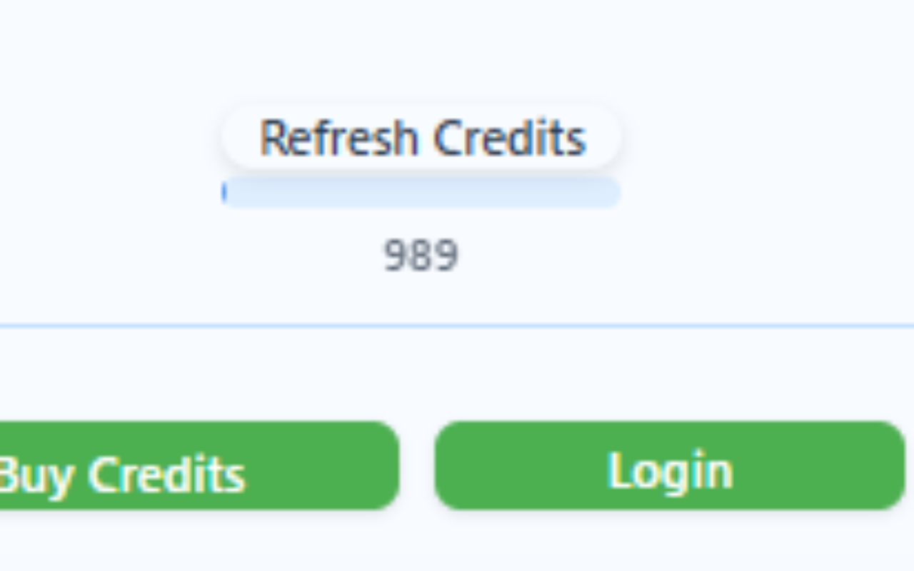 Click 'Refresh Credits' to see your balance, then dismiss the intro message.